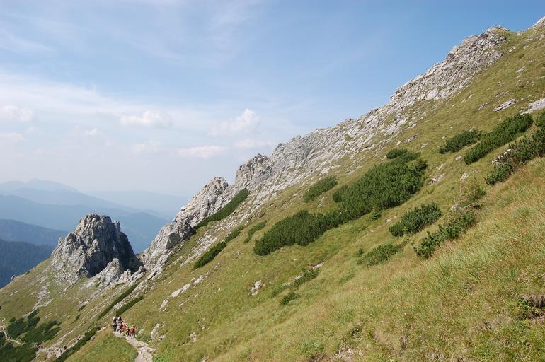 Keywords: mountain mountains landscape view blue top tatra poland green route the path climb sky