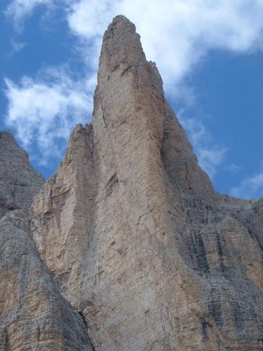 Keywords: mountain peak dolomites italy sky clouds peaks scenic nature country countryside wall steep