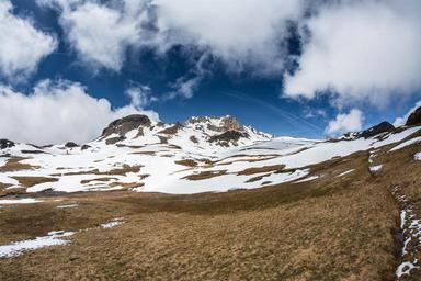 Keywords: mountain sky spring clouds snow blue white green alpes climbing nature outdoor hiking peak landscape cliff travel top activity trekking altitude freedom adventure journey high summer