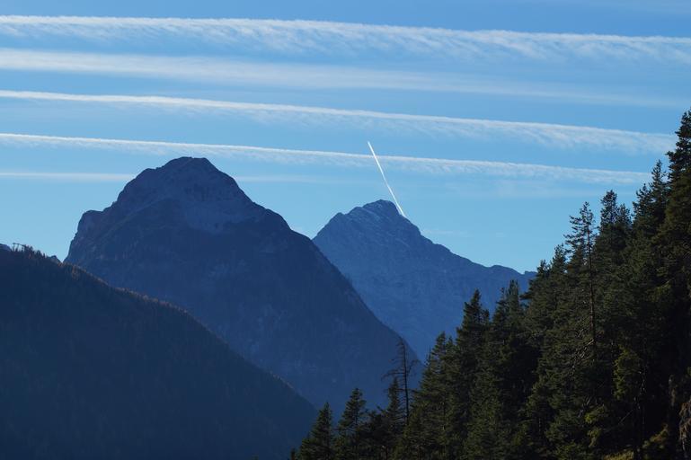 Keywords: mountain sky tyrol blue contrail achensee twilight landscape alpine karwendel mountains nature aircraft