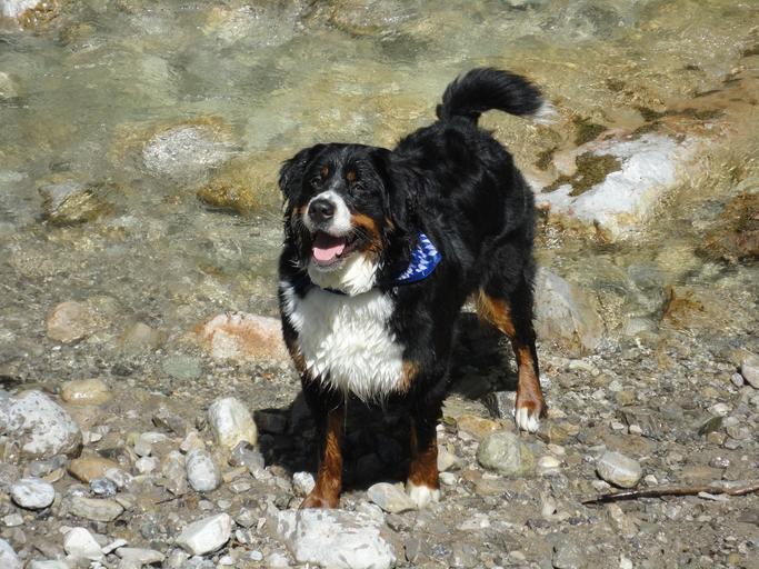 Keywords: mountain stream water glacier water dog bitch berner sennen dog kaitalm bavaria chiemgau source source water thirst