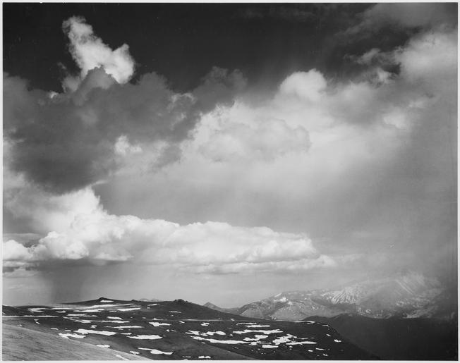 | Keywords: Mountain tops, low horizon, dramatic clouded sky, "In Rocky Mountain National Park," Colorado, 1933 - 1942 - NARA - 519957.tif Local identifier 79-AA-M04 Department of the Interior National Park Service Branch of Still and Motion Pictures - NARA-Author Adams Ansel 1902-1984 Photographer 1332556 <br /> Still Picture Records Section Special Media Archives Services Division NWCS-S National Archives at College Park 8601 Adelphi Road College Park MD 20740-6001 1933 - 1942 Record group Record Group 79 Records of the National Park Service 1785 - 2006 Record group ARC 408 Ansel Adams Photographs of National Parks and Monuments compiled 1941 - 1942 documenting the period ca 1933 - 1942 Series ARC 519830 Variant control numbers NAIL Control Number NWDNS-79-AA-M04 General notes Scope and content File unit File unit ARC yes <gallery> File Mountain_tops _low_horizon _dramatic_clouded_sky _ In_Rocky_Mountain_National_Park _Colorado _1933_-_1942_-_NARA_-_519957 tif tif File Mountain_tops _low_horizon _dramatic_clouded_sky _ In_Rocky_Mountain_National_Park _Colorado _1933_-_1942_-_NARA_-_519957 jpg jpg </gallery> NARA-cooperation PD-USGov Rocky Mountain National Park as photographed by Ansel Adams NARA TIF images with categorized JPGs |