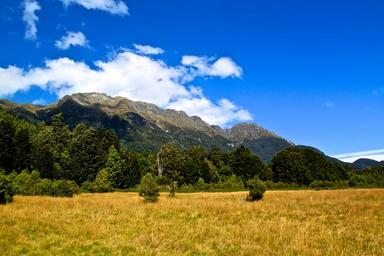 Keywords: mountains grass nature sky blue clouds trees landscape wallpaper