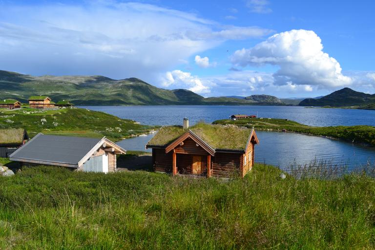 Keywords: mountains lake water view landscape nature top view sky clouds peace of mind cottage green