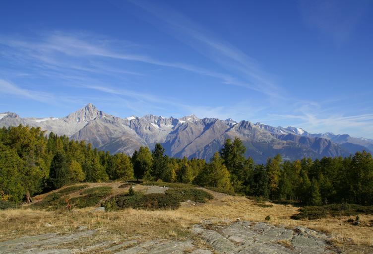 Keywords: mountains landscape alpine autumn sky nature snow valais switzerland sun winter trees forest panorama cold mood wintry hiking