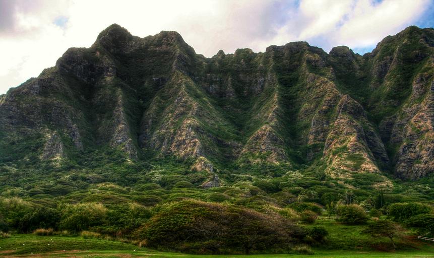 Keywords: mountains mountain range nature outdoors landscape range trees green brown hawaii