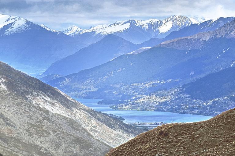 Keywords: mountains peaks valley mountain tops scenery range new zealand untouched mountain range outdoor photo rocky wilderness landscape nature snow scenic lake wakatipu remarkables otago water blue peaceful