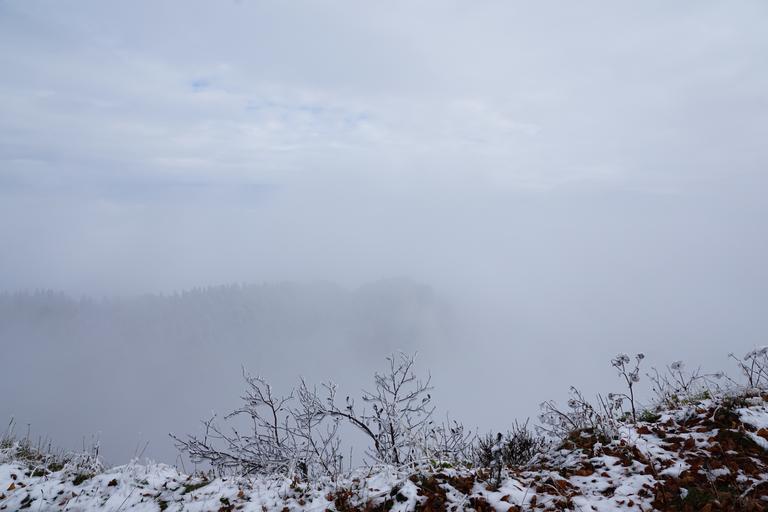 Keywords: mountains winter creux du van switzerland jura snowfall fog misty crap