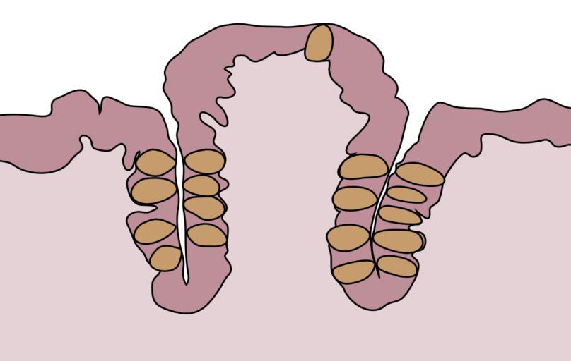 | Keywords: Mouse vallate papilla.svg en Schematic drawing of a murine vallate papilla located on the tongue Taste buds are indicated in brown de Schematische Zeichnung einer Wallpapille der Zunge der Maus Geschmacksknospen sind in braun dargestellt 2014-01-07 10 08 29 own Jonas Töle email how this file has been used Email cc-zero Uploaded with UploadWizard Gustatory system Epithelium Histological schematic | ||||