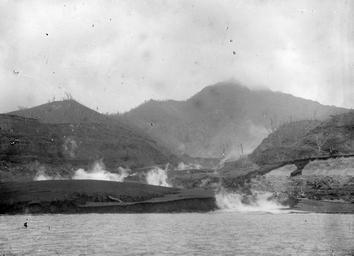 Keywords: Mouth of the Wallibou River Boiling Mud YORYM-TA0035.jpg Mouth of the Wallibou river c f Phil Trans Roy Soc A200 pl 23 fig 1 View from sea showing valley filled with hot ash deposits depicted people depicted place Wallibou River Saint Vincent 1902 Black and White glass Lantern slide Institution Yorkshire Museum Natural History Plate 23 in cite journal Anderson Tempest John S Flett Report on the Eruptions of the Soufriére in St Vincent in 1902 and on a Visit to Montagne Pelée in Martinique Part I Philosophical transactions of the Royal society of London 1903 200 A 353-553 https //archive org/details/reportoneruptio00fletgoog 19 November 2013 object history exhibition history credit line Yorkshire Museum York Museums Trust accession number YORYM TA35 The Tempest Anderson Photographic Archive held at York Museums Trust <br> York Museums Trust image PD-old-100 PD-US Uploaded with UploadWizard Images from the Tempest Anderson Collection vulcanology