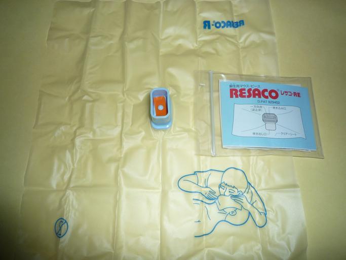| Keywords: Mouthpiece for artificial respiration.jpg ja 人工呼吸実施時に使用する使い捨てシールド ん中のオレンジの部分が患 の息の 流を防ぐ 止弁 使用方法がイラストで示されている en A mouthpiece for artifitial respiration disposable The orenge-colored component prevents a reflux of a patient's breath How to use is shown with an illustlation 2011-10-21 own Phi2528 cc-zero Cardiopulmonary resuscitation First aid kits Uploaded with UploadWizard | ||||