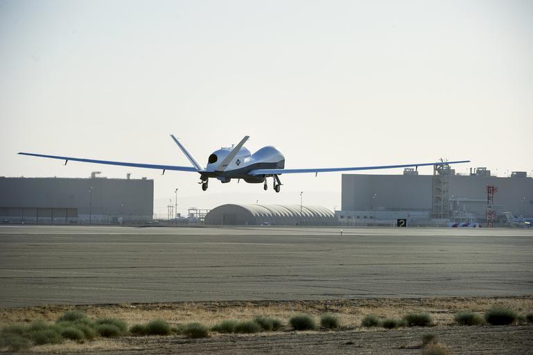 Keywords: MQ-4C rear view on first flight.jpg en The Triton unmanned aircraft system completes its first flight May 22 2013 from the Northrop Grumman manufacturing facility in Palmdale Calif The 80-minute flight successfully demonstrated control systems that allow Triton to operate autonomously Triton is designed to fly surveillance missions up to 24-hours at altitudes of more than 10 miles allowing coverage out to 2 000 nautical miles The system's advanced suite of sensors can detect and automatically classify different types of ships U S Navy photo courtesy of Northrop Grumman by Daniel Perales/Released 130522-O-ZZ999-116 http //www flickr com/photos/usnavy/8906099221/ Daniel Perales 2013-05-22 Official U S Navy photograph PD-USGov-Military-Navy cc-by-2 0 Official U S Navy Imagery http //flickr com/photos/56594044 N06/8906099221 2013-09-19 23 50 38 cc-by-2 0 MQ-4C Triton United States Navy images Aircraft in flight May 2013 in the United States Air Force Plant 42 2013 in California |