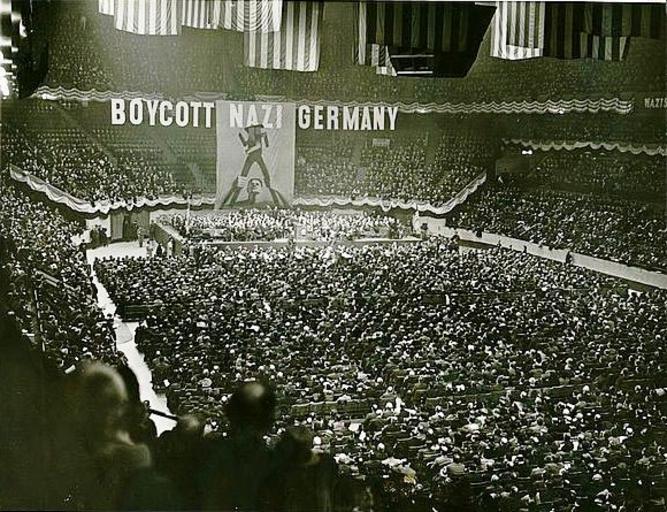 Keywords: MSG III 1937 Anti-Nazi Rally.jpg A rally to boycott Nazi-Germany held at the third Madison Square Garden on March 15 1937 Gelatin silver print From the Library of Congress New York World-Telegram Sun Newspaper Collection http //www loc gov/exhibits/haventohome/haven-home html 1937-03-15 New York World-Telegram Sun Public domain Image was used in the Library of Congress exhibit From Have to Home the online version of which excludes images which are not public domain the places where these images would go are marked Image not available online The image here was included in the online version of the exhibit PD-USGov Madison Square Garden former Boycotts Nazi Germany |
