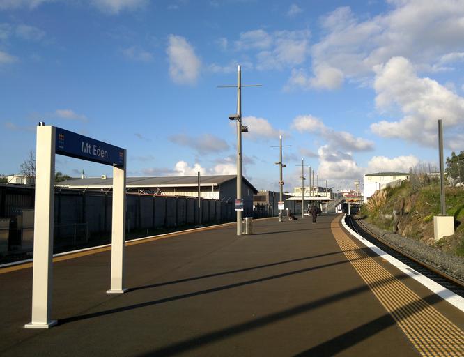Keywords: Mt Eden Railway Station.jpg en The view of Mount Eden Railway Station from the western end of its platform The station bares the defunct Maxx branding and is yet to have electrification work completed 2014-05-19 own Sitedmambo cc-zero Uploaded with UploadWizard Rail transport in Auckland Public transport in Auckland |