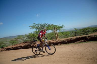 Keywords: outdoor vehicle bike sport KENYA, Laikipia: In a photograph taken by Make it Kenya 23 November 2015, a rider in the Mt. Kenya Epik cycling challenge race rides up a track overlooking Laikipia County, 250km north of the Kenyan capital Nairobi. The Mt Kenya Epik is a 4-day mountain biking adventure challenge race that circumnavigates the Mount Kenya region and has attracted both Kenyan and international riders from as a far afield as Norway and Japan. Taking place between 21-24 November, the Epik was established to attract sports tourism to the Mt. Kenya region and showcase what it has to offer the outdoor, extreme sports enthusiast says Julie Wahome, Managing Director of Africa Extreme, the company which organisesd the Epik. “We were looking to raise the profile of mountain biking in both Kenya and internationally and at the same time provide a platform for local environmental issues from the areas surrounding Mount Kenya”, says Wahome, whose company also organises other extreme off-the-beaten-track sporting events in Kenya, including cycling, running and mountain biking. One of the great things about cycling through this area , says Wahome, is that it offers the participants the opportunity to interact with local communities and also to witness some of the beautiful scenery and landscapes surrounding Mt. Kenya that you otherwise might not see. MANDATORY CREDIT MAKE IT KENYA PHOTO / STUART PRICE. KENYA, Laikipia: In a photograph taken by Make it Kenya 23 November 2015, a rider in the Mt. Kenya Epik cycling challenge race rides up a track overlooking Laikipia County, 250km north of the Kenyan capital Nairobi. The Mt Kenya Epik is a 4-day mountain biking adventure challenge race that circumnavigates the Mount Kenya region and has attracted both Kenyan and international riders from as a far afield as Norway and Japan. Taking place between 21-24 November, the Epik was established to attract sports tourism to the Mt. Kenya region and showcase what it has to offer the outdoor, extreme sports enthusiast says Julie Wahome, Managing Director of Africa Extreme, the company which organisesd the Epik. “We were looking to raise the profile of mountain biking in both Kenya and internationally and at the same time provide a platform for local environmental issues from the areas surrounding Mount Kenya”, says Wahome, whose company also organises other extreme off-the-beaten-track sporting events in Kenya, including cycling, running and mountain biking. One of the great things about cycling through this area , says Wahome, is that it offers the participants the opportunity to interact with local communities and also to witness some of the beautiful scenery and landscapes surrounding Mt. Kenya that you otherwise might not see. MANDATORY CREDIT MAKE IT KENYA PHOTO / STUART PRICE.