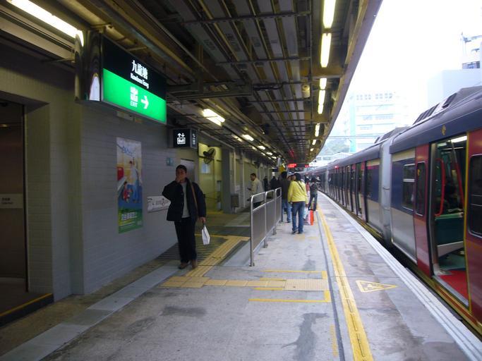 Keywords: MTR ERL KOT Platform.jpg 08-02-05 Train station platforms at Kowloon Tong Station East Rail Line Exit signs in MTR stations