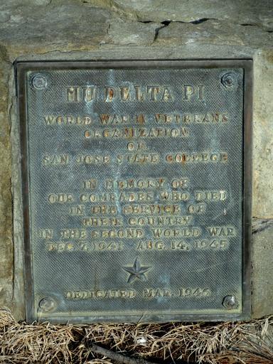 Keywords: Mu Delta Pi World War II Veterans plaque - San José State University - DSC03924.JPG Plaque in San José State University San Jose California USA Daderot 2012-02-02 19 27 10 Daderot cc0 cc0 Plaques in San José State University