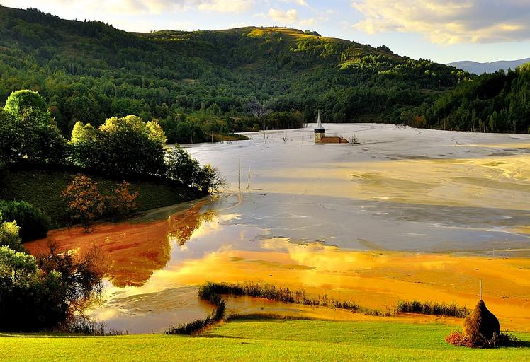 Keywords: mud church flooded old lake sunken landscape nature historic hill