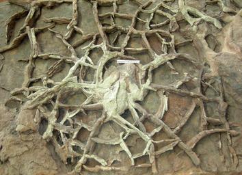 | Keywords: MudcracksCentripetal.JPG  mudcracks in the Lower Jurassic Moenave Formation at the St George Dinosaur Discovery Site Located at Johnson Farm southwestern Utah A dinosaur footprint is in the center Own Wilson44691 2008-07-19 - ;Credits Photograph taken by Mark A Wilson Department of Geology The College of Wooster http //www3 wooster edu/geology/MWilson html Moenave Formation Mudcracks Ground textures Dinosaur footprints in the United States Jurassic fossils from the United States Sedimentology |