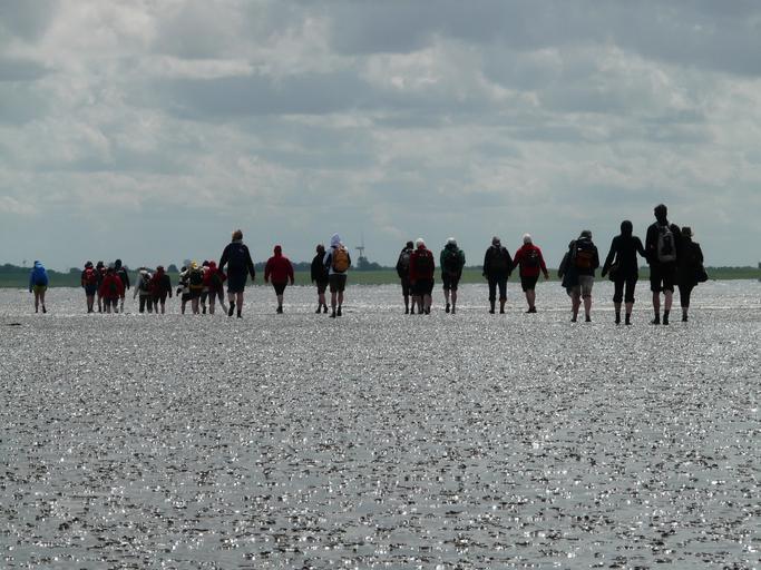 Keywords: mudflat hiking priel hike wadden sea ford personal human schlick mud north sea water risk national park nordfriesland mecklenburg world natural heritage