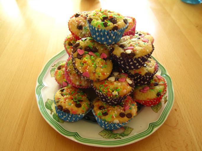Keywords: muffins colorful baked children's birthday children pastries ornament decoration carnival sweet delicious