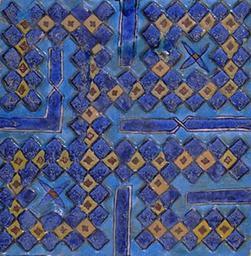 Keywords: Muhammad calligraphy tile.jpg en Tile with the name Muhammad in square Kufi From a mausoleum in Uzbekistan Samarkand Originally one of a set of 18 framing a doorway showing alternately the names of Muhammad and Ali; 13 are still on the building the remainder are in various museums de Fliese mit dem Namen Mohammed in so genannter quadratischer Kufi-Schrift Vom Portal eines 1386 erbauten Mausoleums in Usbekistan Samarkand Ursprünglich rahmten 18 Fliesen jeweils abwechselnd mit den Namen Ali und Mohammed eine Türöffnung 13 sind noch am Bauwerk erhalten; die restlichen befinden sich in verschiedenen Museen 2012-01-07 http //www smb museum/religionen/islam/lex_image php lang de reihe 1 lexikon_id 73 lexikon_aktion author PD-Art Uploaded with UploadWizard Calligraphy of Muhammad Tiles in Uzbekistan