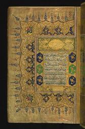 Keywords: Muhammad Salih ibn 'Umar - Double-page Illuminated Frontispiece - Walters W7432A - Full Page.jpg This folio from Walters manuscript W 743 is the left side of a double-page illuminated frontispiece inscribed with the initial verses of chapter 2 Surat al-baqarah islamic 1853 1269 Ottoman ink and pigments on laid European paper cm 16 11 accession number W 743 2A 83118 Robert L Fox date and mode of acquisition unknown Walters Art Museum Gift of Robert L Fox 1990 place of origin Constantinople present-day Istanbul Turkey Walters Art Museum license 2D Qur'an 19th century Walters MS 743 |
