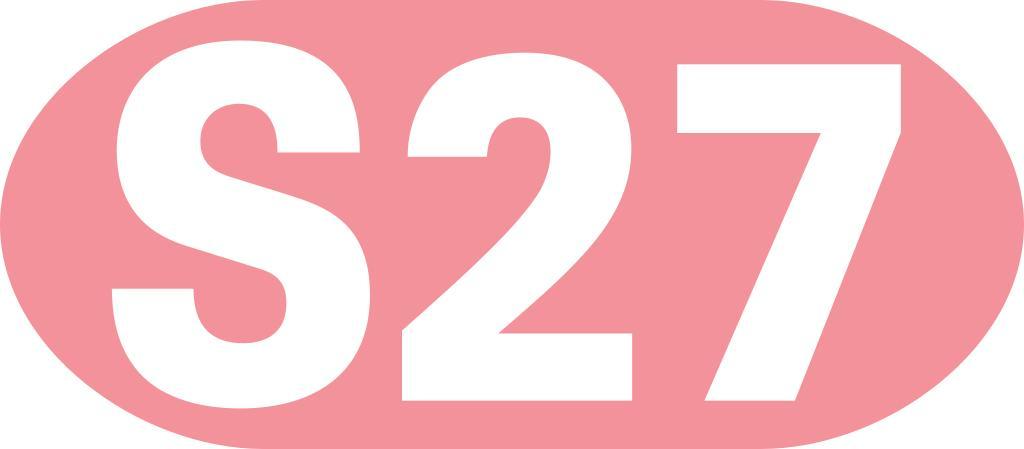 Keywords: München S27.svg Liniennummer der Linie S27 der S-Bahn München line number of line S27 of Munich S-Bahn own image 2006-09-17 Claus Färber 3247 line numbers of Munich S-Bahn S27 27 number White on pink
