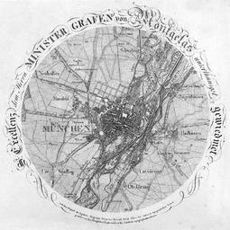 Keywords: München — Stadtplan, Stich, 1810. Sr. Excellenz dem Herrn Minister Grafen von Montgelas...jpg München Sr Excellenz dem Herrn Minister Grafen von Montgelas unterthänigst Gewiedmet Stadtplan im Schriftrund von Neuhausen bis Haidhausen Steinhausen bzw von Schwabing Biederstein bis Untersendling Brudermühl 14 x 14 cm Bestandshaltende Institution Institution Bayerische Staatsbibliothek Signatur Mapp XI 446 Beschreibung https //opacplus bsb-muenchen de/metaopac/singleHit do methodToCall showHit curPos 3 identifier 100_SOLR_SERVER_2144666361 http //img zvab com/member/82547b/29795958 jpg 1810 T Green und Heinrich Posselt Statistisch-topographisches Bureau München enlarged PD-old-100 Old city maps of Munich 1810 maps 1810s engravings Collections of the Bayerische Staatsbibliothek Uploads by Mattes from external sources |