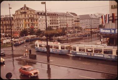 Keywords: MUNICH'S TROLLEYS ARE QUIET AND EFFICIENT. THE CITY'S TRAFFIC CONTROL GOAL IS TO MAKE PUBLIC TRANSPORTATION VERY... - NARA - 551877.jpg MUNICH'S TROLLEYS ARE QUIET AND EFFICIENT THE CITY'S TRAFFIC CONTROL GOAL IS TO MAKE PUBLIC TRANSPORTATION VERY DESIRABLE AND AUTOMOBILE TRANSPORTATION VERY DIFFICULT BY RESTRICTING PUBLIC GARAGES AND ELIMINATING MOST ON-STREET PARKING Münchens Trambahnen sind leise und effizient Das Ziel der der Verkehrskontrolle der Stadt ist es öffentliche Verkehrsmittel höchst attraktiv zu gestalten und den Individualverkehr substantiell zu erschweren indem Parkmöglichkeiten weitgehend eliminiert werden Scope and content General notes 551877 Local identifier 412-DA-9392 Environmental Protection Agency 12/02/1970 - Okamoto Yoichi R Yoichi Robert 1915- Photographer 2987665 <br /> Munich Oberbayern Bavaria Germany Europe inhabited place 4185792 48 133 11 583 <br /> Still Picture Records Section Special Media Archives Services Division NWCS-S National Archives at College Park 8601 Adelphi Road College Park MD 20740-6001 09/1973 Record group Record Group 412 Records of the Environmental Protection Agency 1944 - 2006 Record group ARC 708 DOCUMERICA The Environmental Protection Agency's Program to Photographically Document Subjects of Environmental Concern compiled 1972 - 1977 Series ARC 542493 File unit File unit ARC Variant control numbers Agency-Assigned Identifier 157/32/009392<br /> NAIL Control Number NWDNS-412-DA-9392 Other versions <gallery> File MUNICH'S_TROLLEYS_ARE_QUIET_AND_EFFICIENT _THE_CITY'S_TRAFFIC_CONTROL_GOAL_IS_TO_MAKE_PUBLIC_TRANSPORTATION_VERY _-_NARA_-_551877 tif TIFF File MUNICH'S_TROLLEYS_ARE_QUIET_AND_EFFICIENT _THE_CITY'S_TRAFFIC_CONTROL_GOAL_IS_TO_MAKE_PUBLIC_TRANSPORTATION_VERY _-_NARA_-_551877 jpg JPEG File Munich-Stachus by Okamoto jpg Modified version / JPEG </gallery> NARA-cooperation PD-USGov ImageNote 1 1883 1110 1061 881 3000 2033 2 Bayerstrasse ImageNoteEnd 1 ImageNote 2 30 368 1140 1395 3000 2033 2 Karlsplatz-Stachus ImageNoteEnd 2 ImageNote 3 2561 38 424 953 3000 2033 2 Kaufhof ImageNoteEnd 3 ImageNote 4 1433 585 1065 491 3000 2033 2 Kaufingerstrasse with the major tramway stop Karlsplatz-Stachus ImageNoteEnd 4 Tram class M in Munich 1973 in tram transport in Munich DOCUMERICA photographs by Yoichi Okamoto |