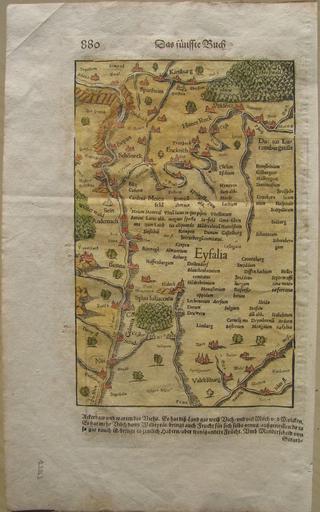 | Keywords: Münster , Sebastian. Eyfalia (1550).jpeg from website Angaben zur Landkarte im à berblick <br/> <br/> Verleger / Kupferstecher Münster Sebastian; Rischwin Simon<br/> <br/> Maßstab Ca 1 1 000 000<br/> <br/> Erschienen Basel Petri Heinrich ab 1550<br/> <br/> Anmerkungen Original Holzschnitt<br/> <br/> Größe der Abbildung 16 x 25 cm<br/> <br/> Größe des Blattes 22 5 x 37 cm<br/> <br/> Zustand Sehr gut<br/> Text from book transcribed by web site author Deutsche Fassung nach Cosmographey Basel 1550 S 604 und 606 nach Meurer <br/> <br/> Wiewol diß ein trefflich rwch und birgig land ist stossend an den Hunesruck und an das Lützelburger land hat es doch gott nit onbegabet gelassen der dann einem ieden land etwas gibt darvon sich die ynwoner mögen betragen und erneren Zu Bertrig ist ein warm bad den krancken heilsam ligt anderhalb meil von der Mosel Onferr von der Graveschafft Manderßheit in den herrschafften Keila Cronenberg und Sleida im thal Hellental macht man fürbündig gut schmid eisen man geußt auch eysenn öfen die ins Oberland als Schwaben und Francken verkaufft werden Item zwen namhafftiger seen seind in der Eyfel einer bei dem schloß Ulmen und ein ander bey dem closter zum Laich die seind seer tieff haben kein ynfluß aber vil außflüß die nennet man Marh und seind fischreich In dem zu Laich findt man stein grün gel und rotfarb gleich den bösen Smaragden und Hyacincten Im Marh zu Ulmen ist ein fisch wie den vil gesehen habenn auf dreissig schuch lang und ein ander uff 12 schuch lang die haben Hecht gestalt Und so sie sich lassen sehen stirbt gewißlich ein gan erb des hauses Ulmen es sey man oder frauw ist offt bewert und erfaren worden Dise Marh ligen gemeinlich auff hohen bergen Man hat das zu Ulmen wöllen ersuchen in seiner tiffe und nach dem man das blei 300 clafftern tieff hinab gelassen hat hat man kein grund mögen finden In der rechten Eyfeln ist ein rwher boden von wälden und do wenig mere dann habern wechßt aber gegen dem Rhein und gegen der Mosel ist es fruchtbar Umb die statt Mäyen die Trierisch ist erzeigen sich gut sylber Bergwerck werdenn aber durch ongeschicklichkeit der bauwren verwarloset und kommen in abgang Der herrschafft halb so in der Eyfel ist soltu wissen das sie fast halber Lützelburgisch und Trierisch ist doch der merer theil Lützelburgisch Darin wonen die Grave von Arburg Firnenberg Manderßheit item Freyherren von Ryfferßheit die herren von Rulingen die herren von Rineck Die graveschafft von Vianden hat der grave von Nassaw zu Dillenburg Darin ligt die statt S Veit und die statt Bastenach die doch Lützelburgisch ist Der Eyffler hantierung ist fast mit rind viech honig und wachs Das vieh kompt fast auß dem land bey Bastenach heißt das Oeßling und der groß wald genant Ardenner wald darin S Ruprecht das groß closter ligt Es schreibt von disem land doctor Simon Richwein der es wol durchfaren und besichtiget hat also Diß land ist von natur ongeschlacht rwch von bergen und tälern kalt und mit ongestümen regen vil überschütt aber wässer und bronnen halb gar lustig Die ynwoner seind gar arbeitsam haben sinnreiche köpff wo sie geübt werden aber sie hangen an dem ackerbaw und warten des viechs Es hat diß land gar wyß viech und vil milch und molcken Es hat mer fisch dann wilpret bringt auch frucht für sich gnug ußgenommen do es so gar rwch ist bringt es zimlich habern aber wenig anderer fruchten Umb Manderscheid und Gerardstein möcht es zu sommer Zeiten verglichen werden Italic seiner summer früchten halb dann es bringt Melonen cucumern krausen Lattich und der gleichen welschen früchten In der herschafften Sleida Cronenberg und Kieln seind eysen ertz do man die ysen öfen auß geüßt http //landkarten-ausstellung de/Landkarten/DW1550001 htm Hans-Eberhard Peters Münster Sebastian; Rischwin Simon 1550 PD-old-100 Historical maps of Eifel Cosmographia Münster Manderscheid County of Sponheim Old maps of Rhineland-Palatinate |