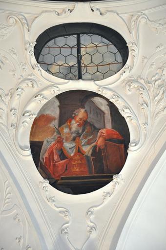 Keywords: Münsterlingen Klosterkirche A003 Scheinkuppel Zwickel Ambrosius.jpg Münsterlingen ehemalige Klosterkirche St Remigius Deckengemälde von Jacob Carl Stauder 1718 “1719 own own photograph 2014-05 Creator Jacob Carl Stauder Photo Andreas Praefcke Photos by User AndreasPraefcke Ceiling paintings in St Remigius Münsterlingen 1719 paintings |