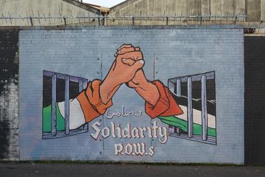 Keywords: mural belfast conflict prisoner of war prisoners palestine bars prison