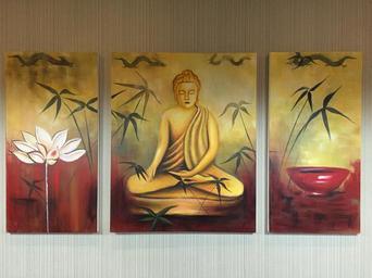 Keywords: mural buddha statues lotus lotus leaf plant green leaf
