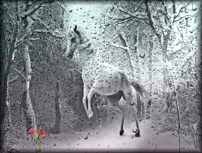 Keywords: mural comic drawing artistically animals horse mold snow winter black white creativity artfully composition photo montage poster