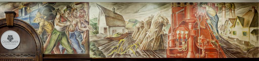 | Keywords: Mural "Opening of the Midwest," by Robert Francis White at Federal Building & U.S. Courthouse, Cedar Rapids, Iowa LCCN2013634464.tif 1 photograph digital tiff file color Notes Gift; Carol M Highsmith; 2009; DLC/PP-2009 083 ; Photographed as part of an assignment for the General Services Administration ; Title date and keywords from information provided by the photographer ; Date 1937; medium tempera ; Forms part of Photographs in the Carol M Highsmith Archive ; Credit line Photographs in the Carol M Highsmith Archive Library of Congress Prints and Photographs Division 2011 Creator Carol M Highsmith Library of Congress Catalog http //lccn loc gov/2013634464 Image download https //cdn loc gov/master/pnp/highsm/24900/24904a tif Original url http //hdl loc gov/loc pnp/highsm 24904 No known restrictions on publication LOC-image highsm 24904 PD-Highsmith Images uploaded by Fæ Photographs by Carol M Highsmith |