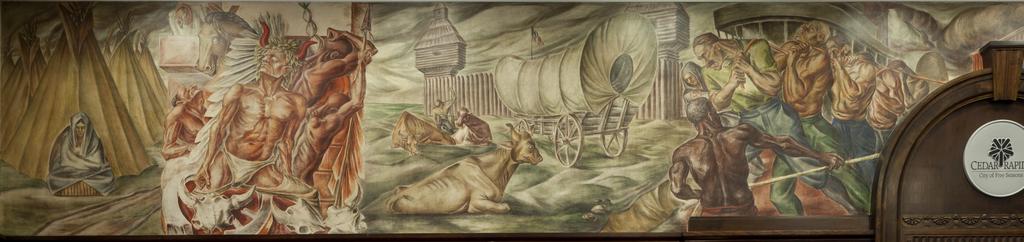 | Keywords: Mural "Opening of the Midwest," by Robert Francis White at Federal Building & U.S. Courthouse, Cedar Rapids, Iowa LCCN2013634330.tif 1 photograph digital tiff file color Notes Gift; Carol M Highsmith; 2009; DLC/PP-2009 083 ; Photographed as part of an assignment for the General Services Administration ; Title date and keywords from information provided by the photographer ; Date 1937; medium tempera ; Forms part of Photographs in the Carol M Highsmith Archive ; Credit line Photographs in the Carol M Highsmith Archive Library of Congress Prints and Photographs Division 2011 Creator Carol M Highsmith Library of Congress Catalog http //lccn loc gov/2013634330 Image download https //cdn loc gov/master/pnp/highsm/24700/24723a tif Original url http //hdl loc gov/loc pnp/highsm 24723 No known restrictions on publication LOC-image highsm 24723 PD-Highsmith Images uploaded by Fæ Photographs by Carol M Highsmith |