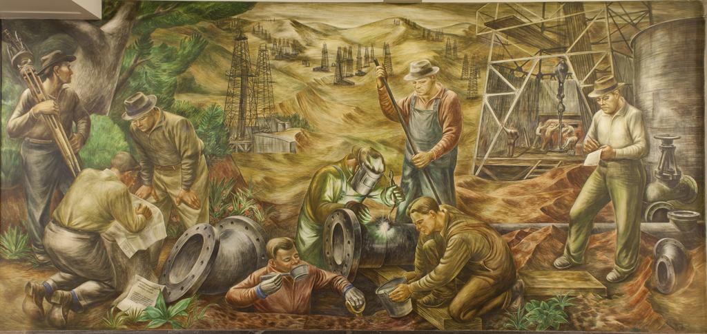 | Keywords: Mural- Petroleum Industry - Production, by Edgar Britton at the Department of Interior, Washington, D.C LCCN2013634346.tif 1 photograph digital tiff file color Notes Gift; Carol M Highsmith; 2009; DLC/PP-2009 083 ; Date 1939; dimensions 111 x 235 ; Photographed as part of an assignment for the General Services Administration ; Title date and keywords from information provided by the photographer ; Forms part of Photographs in the Carol M Highsmith Archive ; Credit line Photographs in the Carol M Highsmith Archive Library of Congress Prints and Photographs Division 2011 Creator Carol M Highsmith Library of Congress Catalog http //lccn loc gov/2013634346 Image download https //cdn loc gov/master/pnp/highsm/24700/24739a tif Original url http //hdl loc gov/loc pnp/highsm 24739 No known restrictions on publication LOC-image highsm 24739 PD-Highsmith Images uploaded by Fæ Photographs by Carol M Highsmith Photographs by Carol M Highsmith needing review |