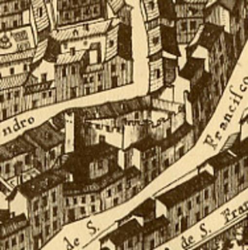 Keywords: Muralla cristiana madrid cava baja.jpg Madrid Detalle del plano de Pedro Teixeira de 1656 donde se aprecian restos de la muralla cristiana de la ciudad http //elmadridmedieval jmcastellanos com/Pagina 20Urbanismo/Muralla 20cristiana htm 1656 Pedro Teixeira PD-old-100 Christian wall of Madrid Pedro Teixeira's Topographia de la Villa de Madrid |
