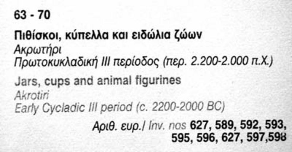 Keywords: MusAkrotiriCard63-70-06644.jpg Curator's card Museum of Cycladic Culture Akrotiri excavatgion artifacts Santorini Cyclides Hellas Greece Own Taken April 3 2007 User Leonard G See gallery below for related images Museum labels