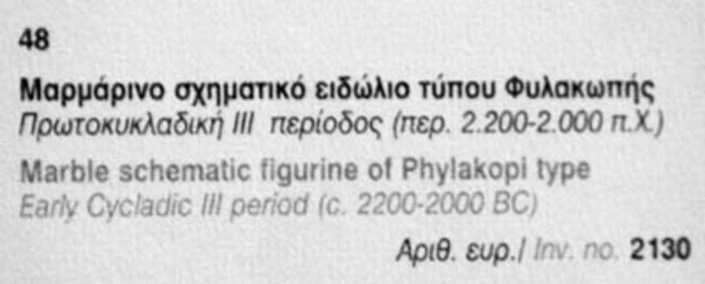 | Keywords: MusAkrotiriCardItem48Image06635.jpg Curator's card Museum of Cycladic Culture Akrotiri excavation artifacts Santorini Cyclides Hellas Greece Own Taken April 3 2007 User Leonard G See gallery below for related images Cycladic culture Female figurine in MPT Santorini 2130 |