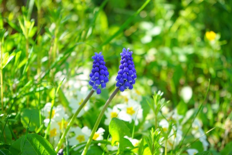 Keywords: muscari blossom bloom flower blue spring asparagus plant asparagaceae perl hyacinth farmer boy bergmaennchen