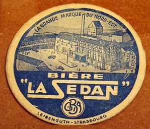 Keywords: Musée Européen de la Bière, Beer coaster pic-162.JPG La Sedan Photographed through glass own 2012-08-16 16 50 43 AlfvanBeem CC-zero Trademarked Musée Européen de la Bière Nostalgia by Alf van Beem Beermats Sedan