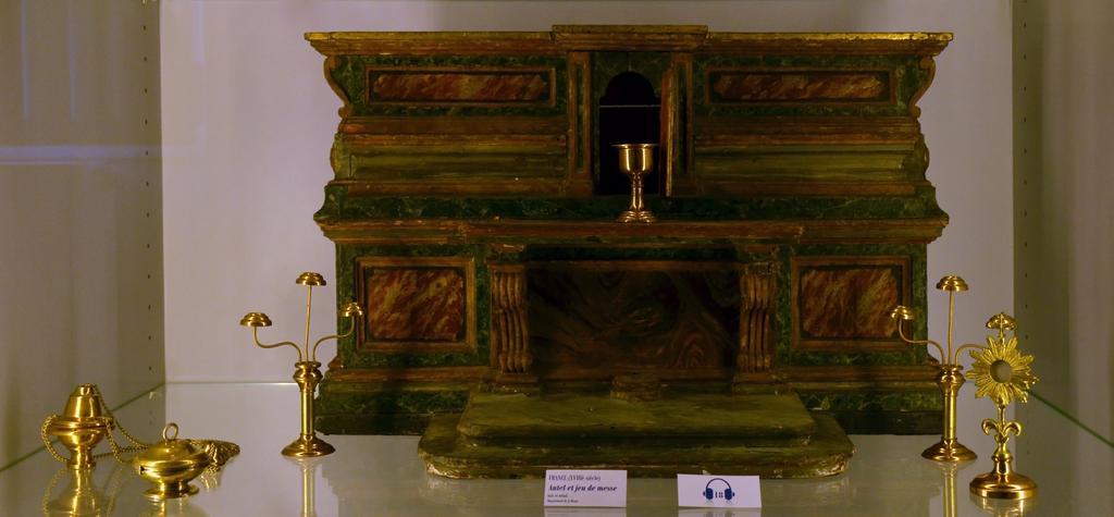 Keywords: Musée Sainte-Menehould Jeu Autel 29112014.jpg en Miniature altar and religious items toy 18th century Wood and metal Musée d'Art et d'Histoire de Sainte-Menehould France 2014-11-29 16 12 08 own Vassil other versions cc-zero Uploaded with UploadWizard Musée d'Art et d'Histoire de Sainte-Menehould Antique toys |