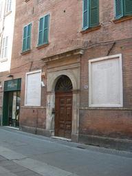 Keywords: Museo Ebraico Ferrara.JPG en The Jewish Museum in Ferrara L'ingresso del Museo ebraico nell'ex ghetto di Ferrara Own Sien Museums in Ferrara Museums about Judaism in Italy Ferrara Ghetto Ferrara Jewish inscriptions in Italy Ferrara Plaques in Ferrara The Holocaust in Italy Ferrara Arch doors Window shutters Doors in Ferrara Palaces and houses facades resembling faces in Italy Bilingual plaques in Italy |