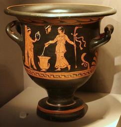 | Keywords: Museum of Cycladic Art - Red-figure calyx krater.jpg Calyx Krater 350 - other date BC 340 Classical period cm 25 5 26 Institution Museum of Cycladic Art N P Goulandris Collection no 715 Unknown provenance http //www cycladic gr/frontoffice/portal asp cpage RESOURCE cresrc 1070 cnode 46 clang 1 Museum of Cycladic Art Ophelia2 Artwork PD-old-100 Photo ImageNote 1 305 324 227 597 1539 1620 2 Young naked man holding a wreath ImageNoteEnd 1 ImageNote 2 540 300 149 157 1539 1620 2 female head mask ImageNoteEnd 2 ImageNote 3 454 265 564 672 1539 1620 2 Woman performing libation into a krater ImageNoteEnd 3 Ancient Greek pottery in the Museum of Cycladic Art Athens Files by User Ophelia2 Calyx kraters 340s BC pottery Graz Painter Libations in ancient Greek pottery |