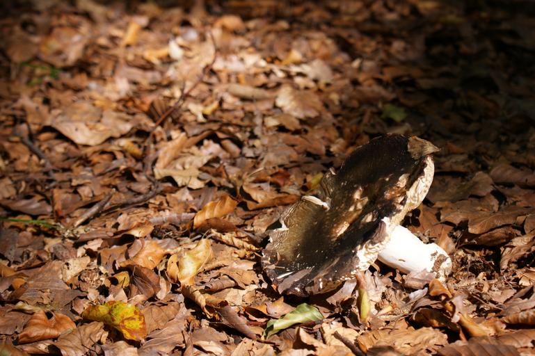 Keywords: mushroom september forest leaves brown landscape sunny