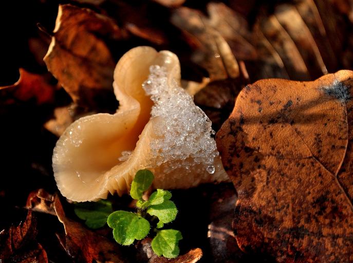 Keywords: mushrooms fungus snow green winter fresh nature white forest floor autumn season