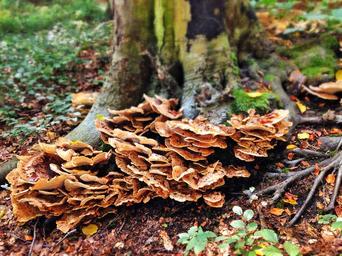 Keywords: mushrooms tree autumn moss brown forest floor forest