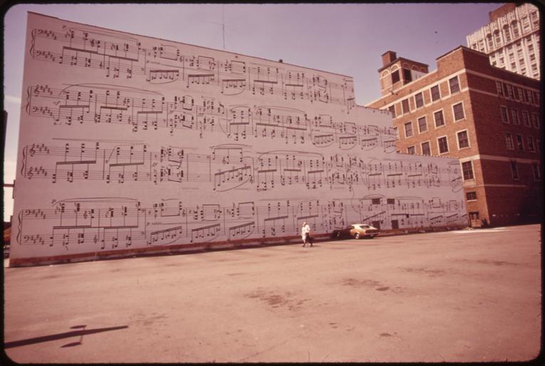 Keywords: MUSIC STORE HAS PAINTED A SYMPHONIC SCORE ON BUILDING WALL FACING PARKING LOT - NARA - 551584.tif Scope and content General notes 551584 Local identifier 412-DA-9099 Environmental Protection Agency 12/02/1970 - NARA-Author Emmerich Donald Photographer 3045077 <br /> Minneapolis Hennepin county Minnesota United States North and Central America inhabited place 4202194 44 967 -93 25 <br /> Still Picture Records Section Special Media Archives Services Division NWCS-S National Archives at College Park 8601 Adelphi Road College Park MD 20740-6001 06/1973 Record group Record Group 412 Records of the Environmental Protection Agency 1944 - 2006 Record group ARC 708 DOCUMERICA The Environmental Protection Agency's Program to Photographically Document Subjects of Environmental Concern compiled 1972 - 1977 Series ARC 542493 File unit File unit ARC Variant control numbers Agency-Assigned Identifier 152/39/009099<br /> NAIL Control Number NWDNS-412-DA-9099 yes Other versions <gallery> File MUSIC_STORE_HAS_PAINTED_A_SYMPHONIC_SCORE_ON_BUILDING_WALL_FACING_PARKING_LOT_-_NARA_-_551584 tif tif File MUSIC_STORE_HAS_PAINTED_A_SYMPHONIC_SCORE_ON_BUILDING_WALL_FACING_PARKING_LOT_-_NARA_-_551584 jpg jpg </gallery> NARA-cooperation PD-USGov NARA TIF images with categorized JPGs |